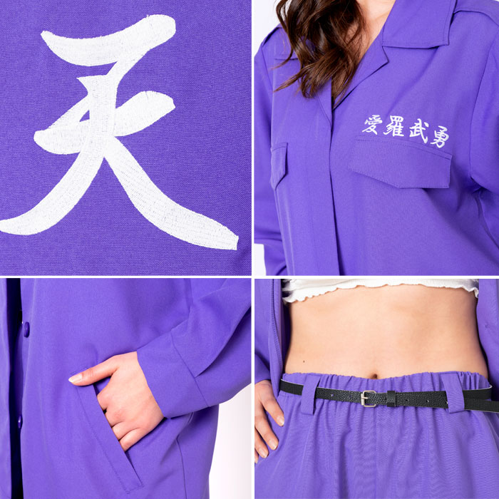 レディース コスプレ 特攻服ジャケット 天下無敵 パープル本格的な刺繍が胸と背中にあるレディース特攻服上下セットです。
